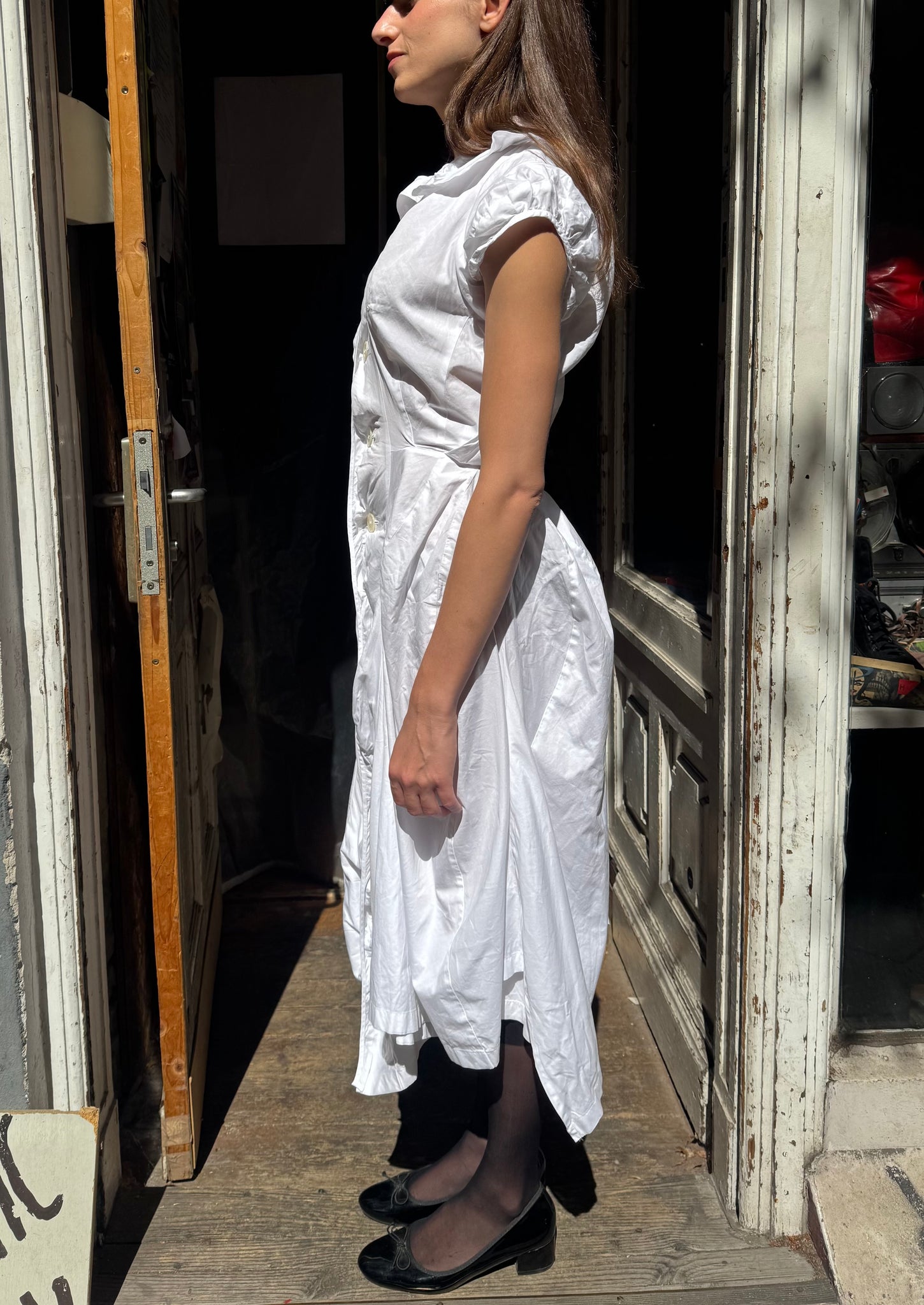 Junya Watanabe Peter Pan collared white cotton maxi dress
