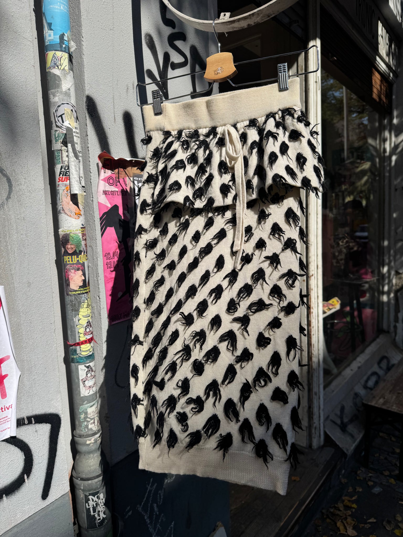Vivienne Westwood Gold knit label frayed polka dots bustle skirt